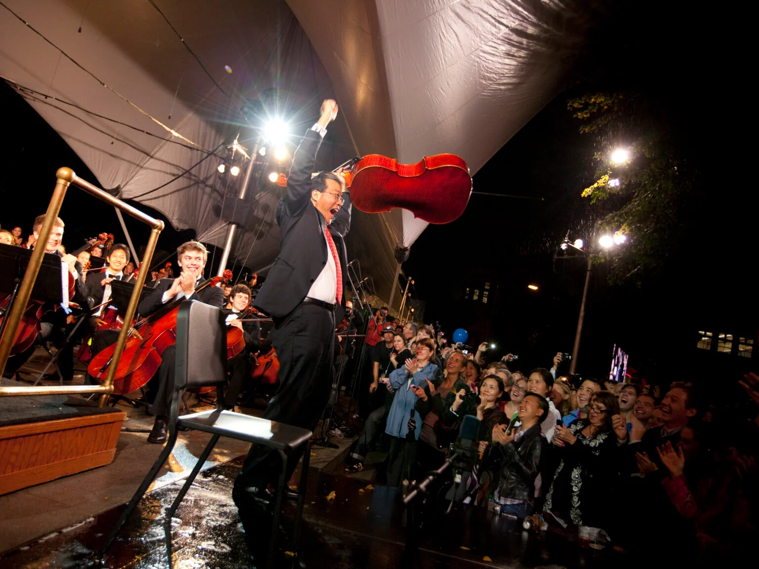 Pictured: Cellist Yo-Yo Ma celebrating the 375th birthday of Harvard University.