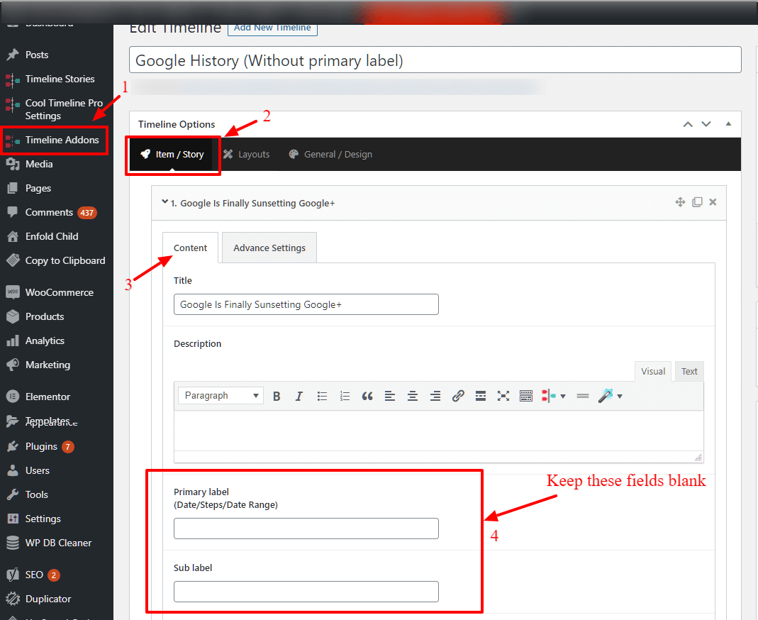 Hide/Display Date & Text Labels Inside Timeline Layout