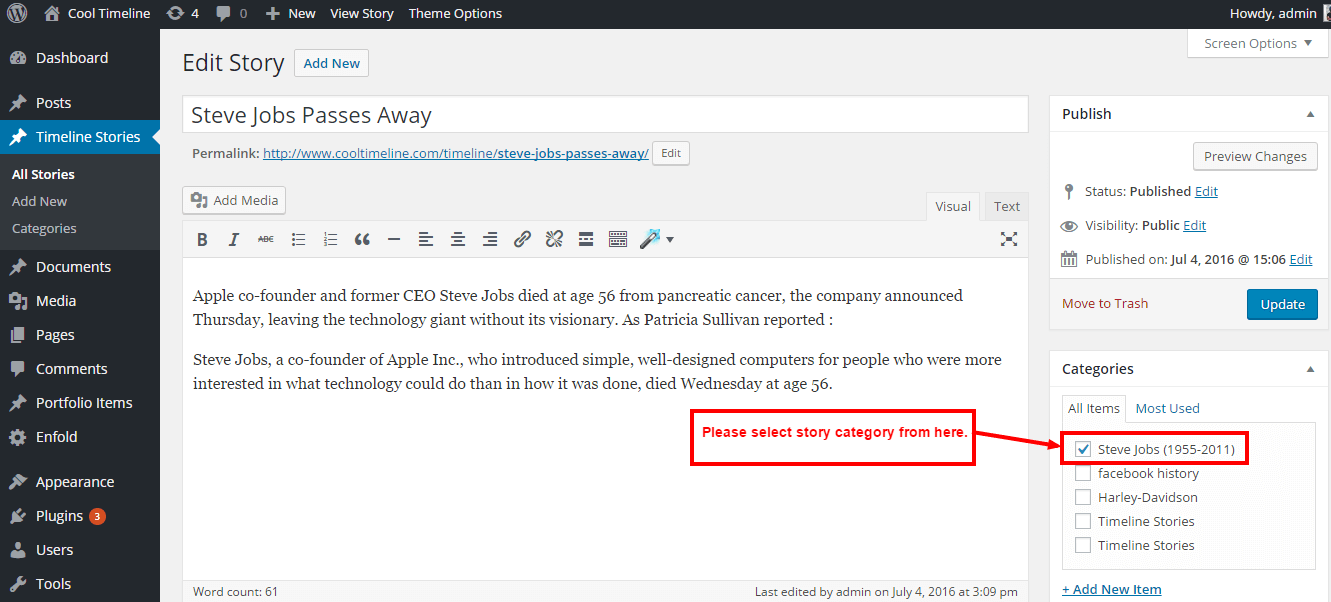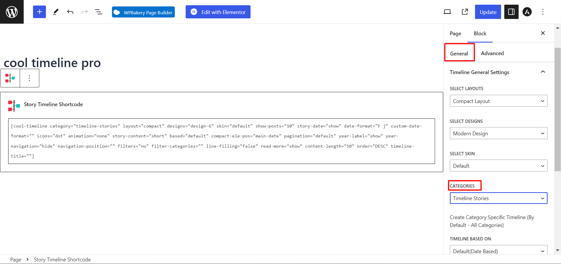 1. Go to Timeline Stories > Categories and add categories for your multiple timelines.